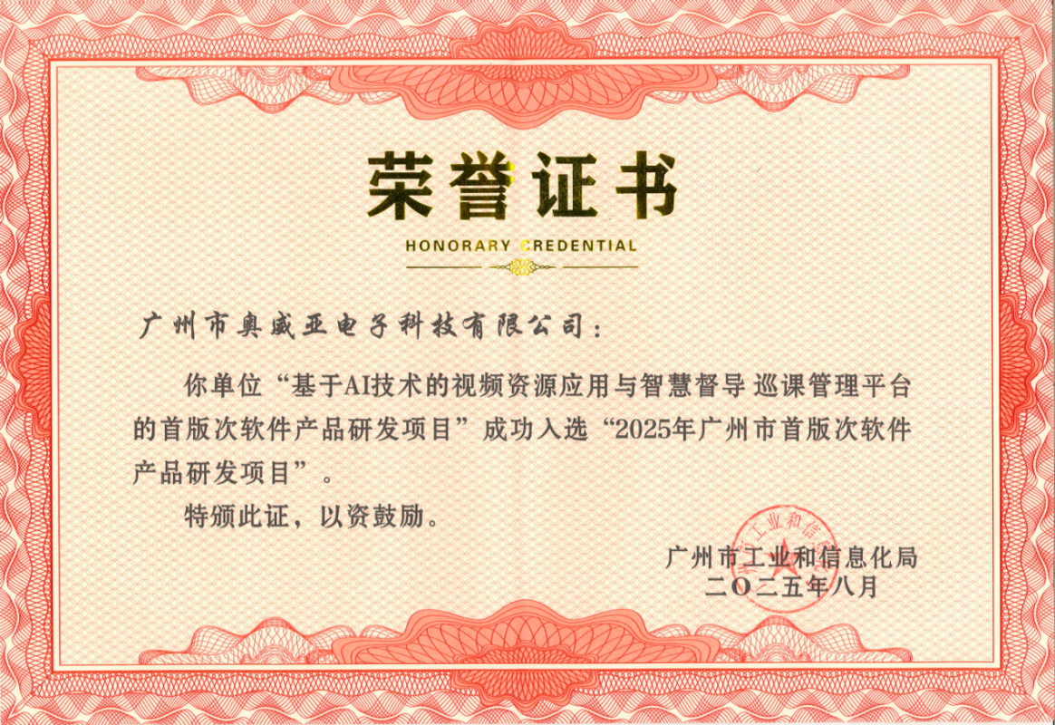 奧威亞入選2025年廣州市首版次軟件產品...